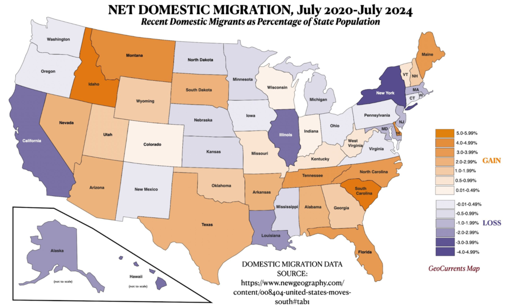 - California: Leading in net out-migration.